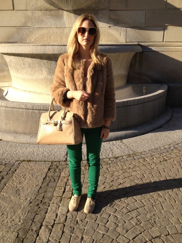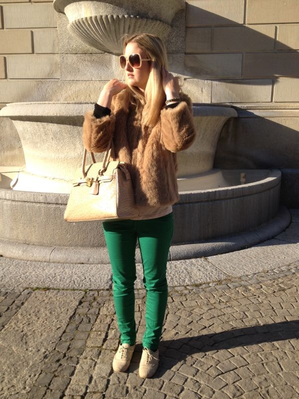 I love your fur!! so great green pants and cluth:)